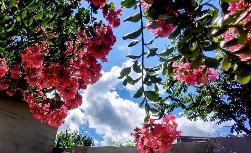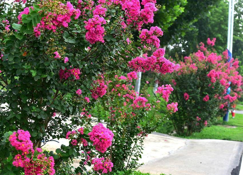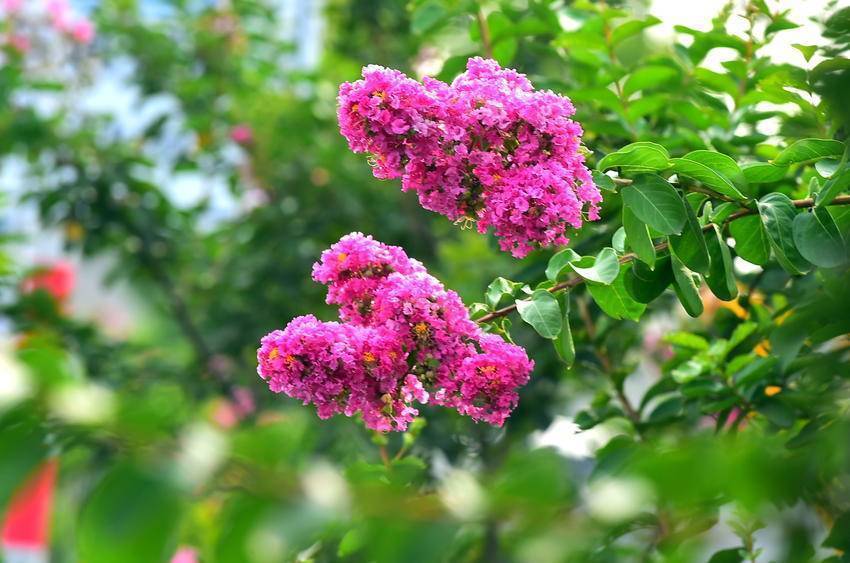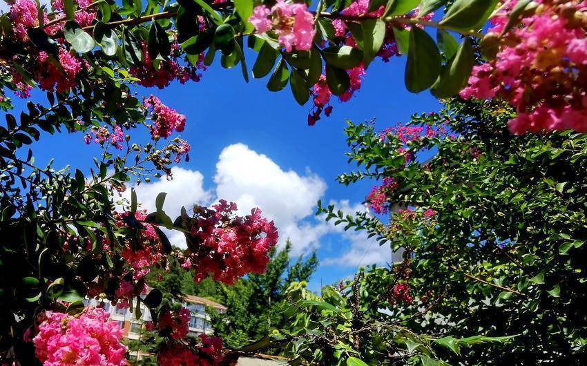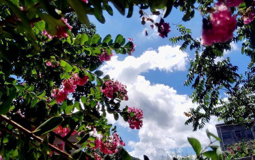 紫薇花期最长,从6月开到10月,所以又叫百日红。紫薇花色中的紫色,为传统的经典色,有紫气东来的意思,寓意好运。紫薇花的花语之一是坚强与顽强:它生长在干旱和贫瘠的土壤中,能够适应恶劣的环境并保持生机。这象征着生命的顽强与坚持,鼓励人们在逆境中坚持不懈,追求梦想。