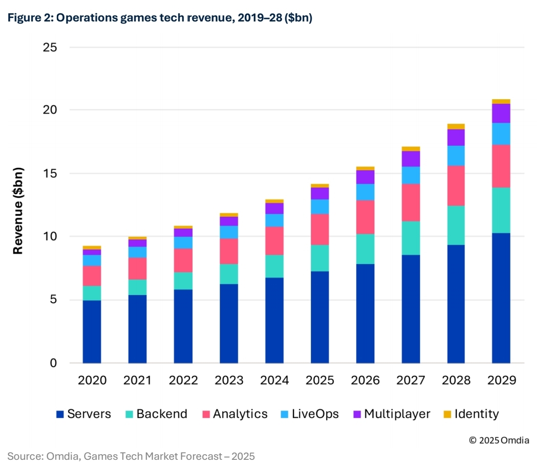 9月16日,《2025全球游戏云平台市场雷达》在深圳发布。报告显示,2024年游戏行业对云服务的依赖度显著提升, 服务器、后端服务及运营解决方案支出已达129亿美元,约占游戏技术总支出的20%,相当于整个游戏市场总值的5%以上;预计2025年将增长至142亿美元。长期预测显示,到2029年该市场规模将扩大至209亿美元,年增长率超过10%。