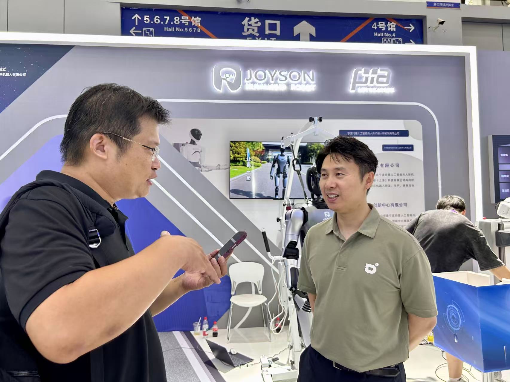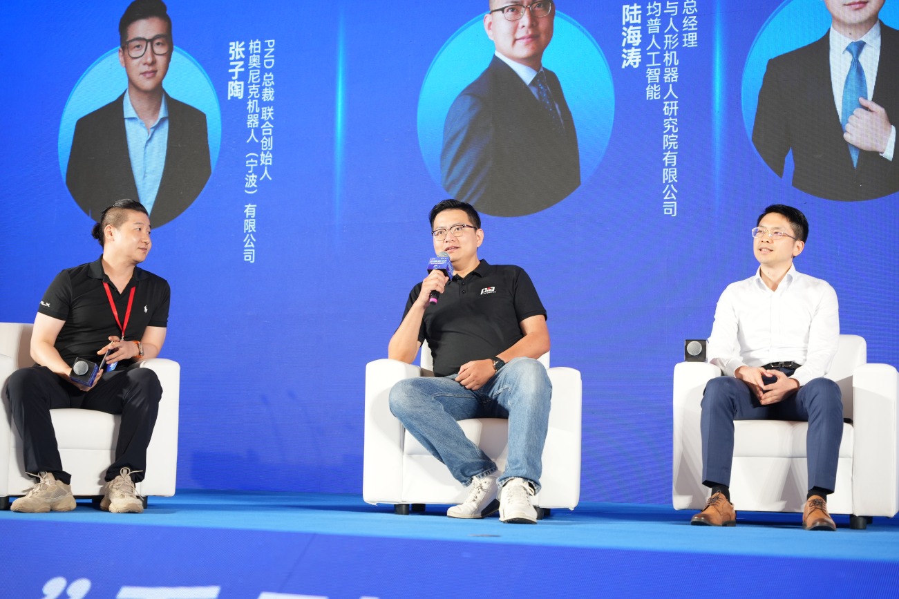 受宁波市经信局的委托,均普人工智能与人形机器人研究院邀请到了智元机器人联合创始人、具身智能事业部总裁姚卯青参加了本届智博会开幕演讲,会后到智博会现场和大家进行互动交流。姚卯青表示:“目前,从全球来看智元机器人是行业内领先的企业,本次和均普智能合作完成首批落地工业场景的具身智能机器人,也是填补了该行业的一个空白。现在智元机器人能够先做一个示范,把数据采集和标准提出来,让大家知道数据的价值,也能与智元机器人这样的团队一起合作,从而生产更多高价值数据。未来,智元机器人与均普智能会加大核心零部件、整机的加工制造,汽车类零部件、结构件、电子件等的生产,存储和加工测试等合作空间,双方会共同努力建立一个良好的具身智能机器人生态合作环境。”