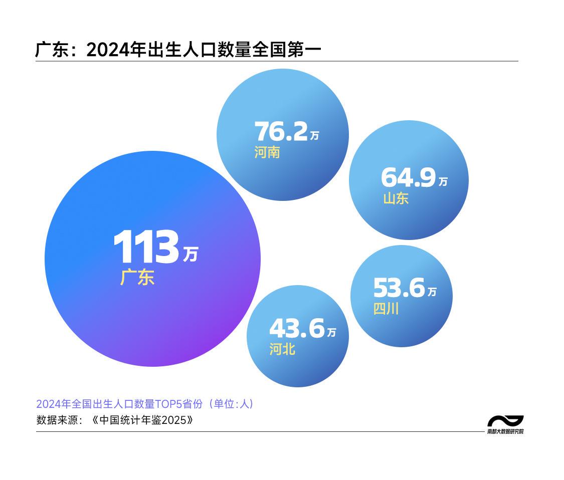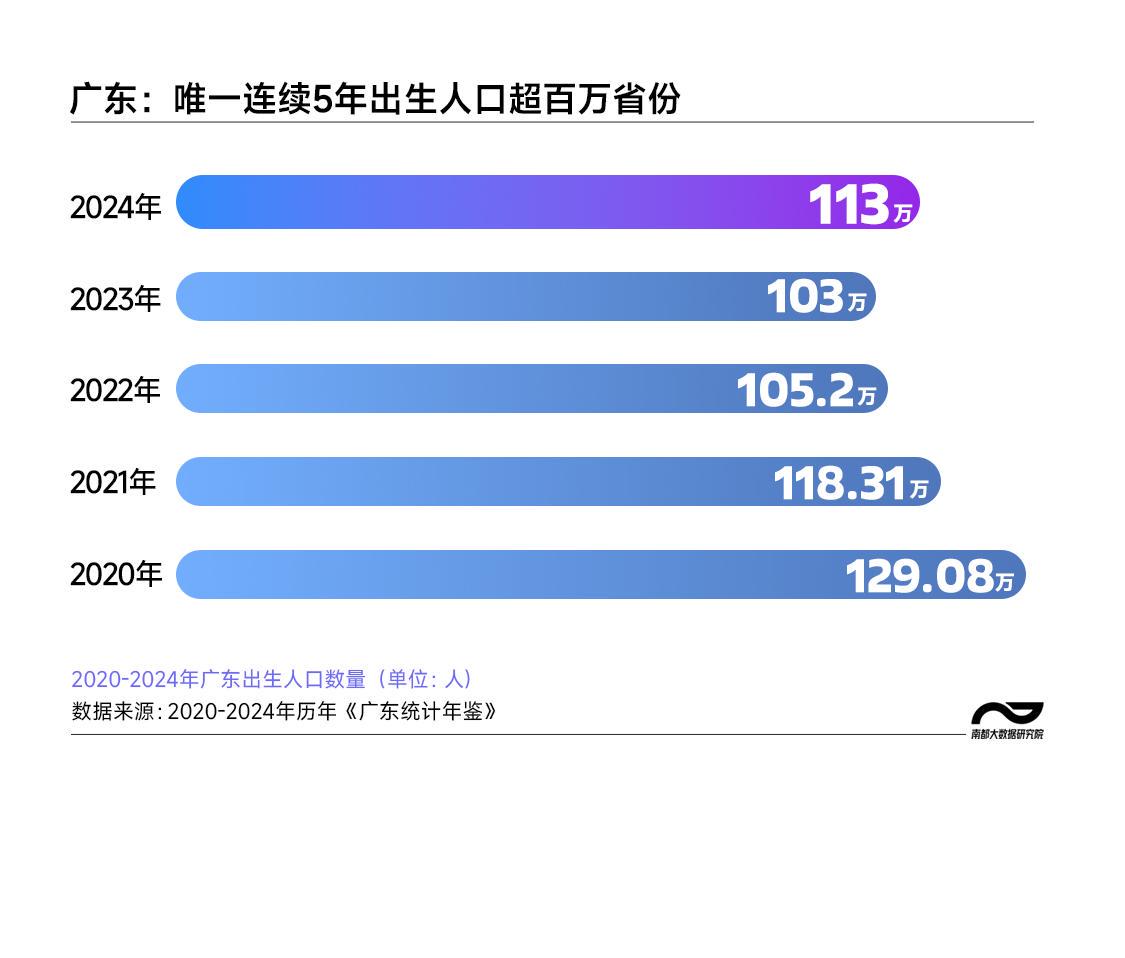 广东成为全国唯一连续5年出生人口突破百万的省份。